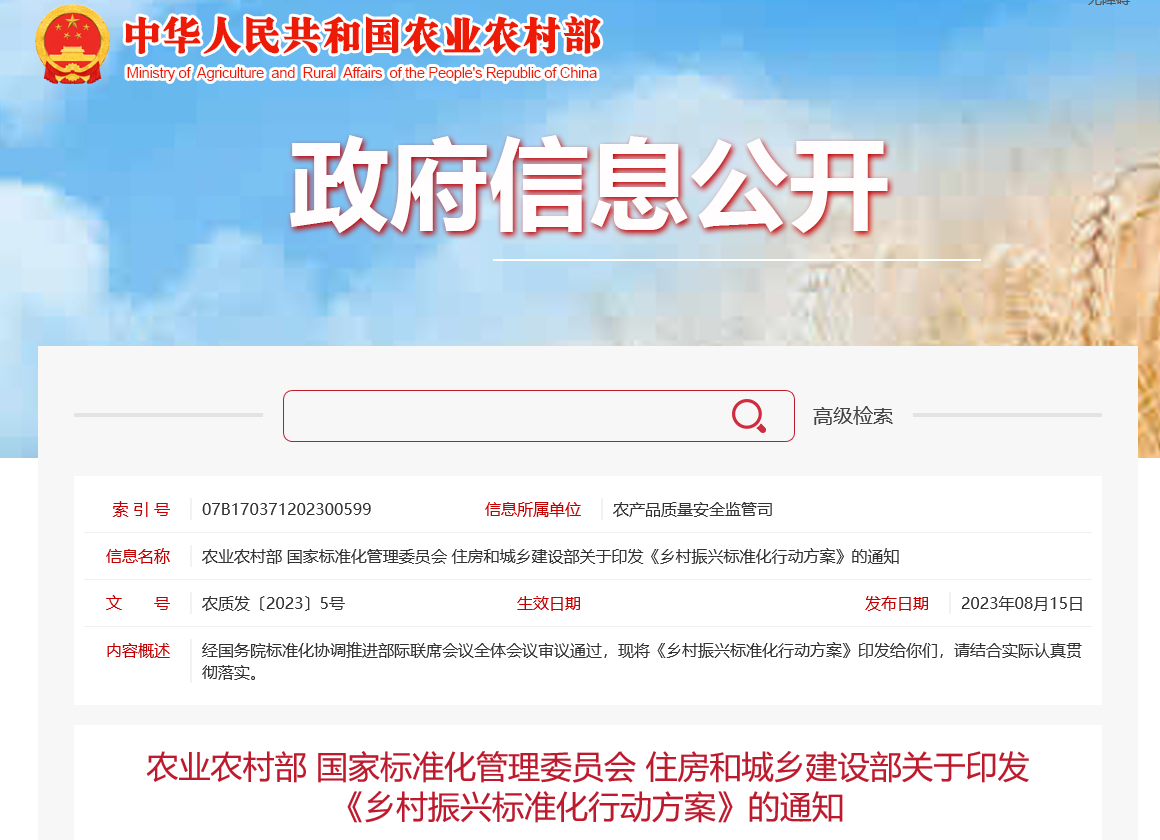 为贯彻落实《中共中央、国务院关于实施乡村振兴战略的意见》、《国家标准化发展纲要》、《“十四五”推进农业农村现代化规划》等有关部署,统筹实施乡村振兴标准化行动,充分发挥标准化在推动乡村振兴中的支撑作用,制定本行动方案。