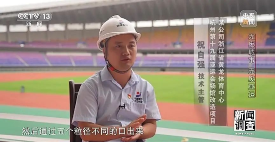 某公司浙江省黄龙体育中心 亚运会场馆改造项目技术主管 祝自强:主要是赛事功能的提升,还有周边环境的提升。我们整个体育场的内场,包括我们身后这块草坪,包括标准的跑道还有我们现在看到的很多渐变色的座椅。