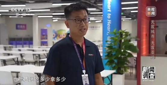 亚运村运行团队市政保障中心环境保障主管 阮金荣:为了减少运动员餐厅易腐垃圾的产生量,首先在源头,在食材进来的时候是净菜,基本上都是半成品,也就是说一些没有必要的食物包装或者是外皮都在源头减掉了。第二个,在运动员吃的时候我们提供的自助餐形式,也就是说吃多少拿多少,可以减少食物浪费。