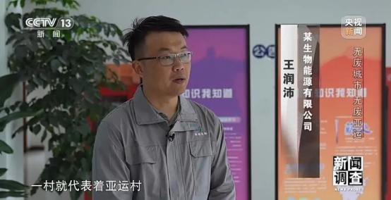 某生物能源有限公司 王润沛:我们公司负责亚运的内容,我们总结是一村三馆,一村就代表着亚运村,整个亚运村易腐垃圾的收运。三馆是三种场馆,一个是比赛场馆,一个是训练场馆,第三个馆就是我们相应的保障性酒店。我们目前统计下来,我们一村三馆总共是23个点位的易腐垃圾的收运。